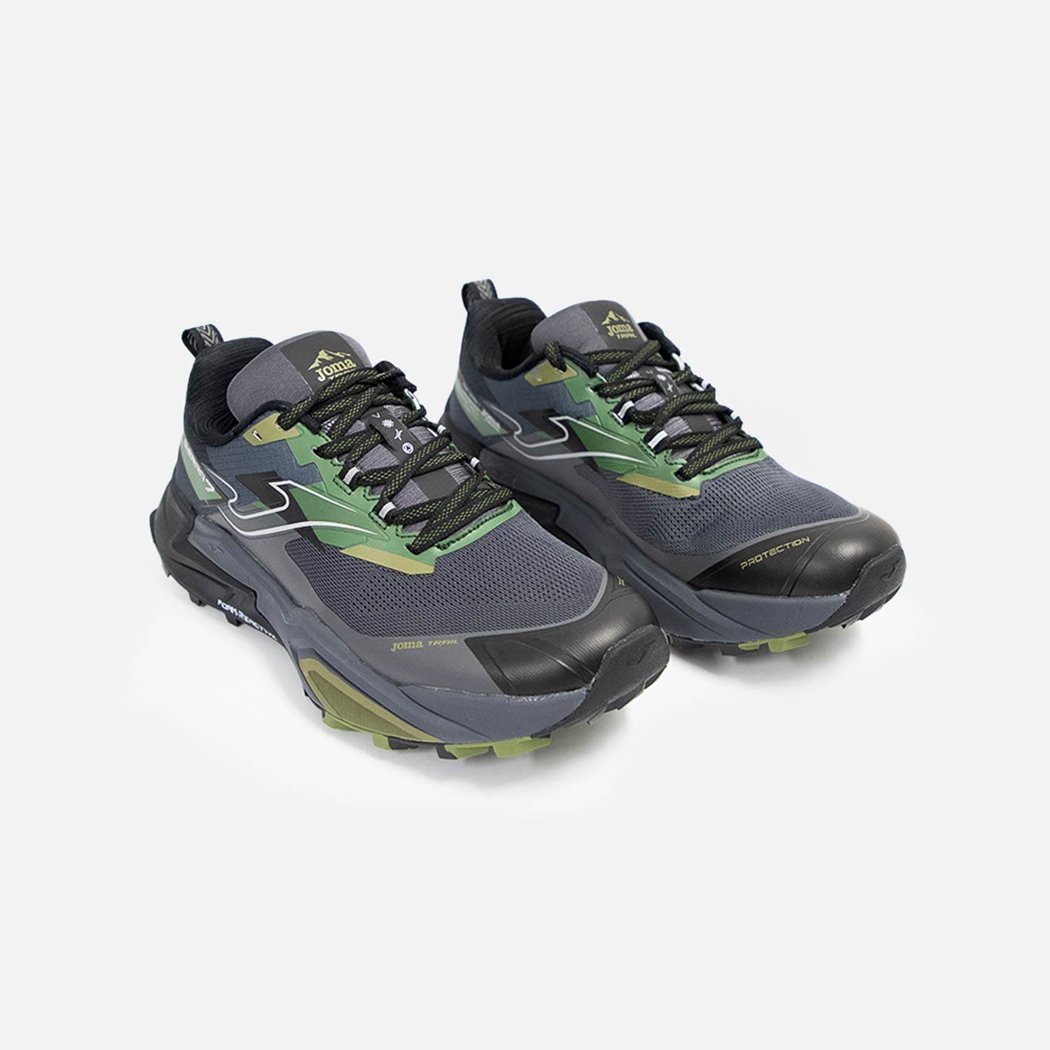 Upper elaborado principalmente en mesh transpirable con acabado en Jacquard. Asegura la evacuación del sudor gracias a la tecnología VTS. Para ajustar el corte, se ha empleado el sistema termosellado sin costuras JOMA SPORTECH.